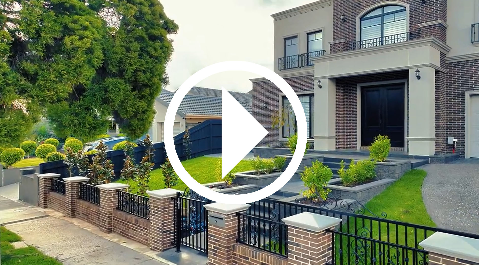 In the front yard, we designed and constructed a boundary wall, lawn, porch, and entry steps that followed the natural slope of the site. Both the steps and porch were built using premium bluestone, offering a refined texture and an elegant finish that complements the architecture. A washed aggregate driveway and a custom front gate complete the sophisticated entryway.