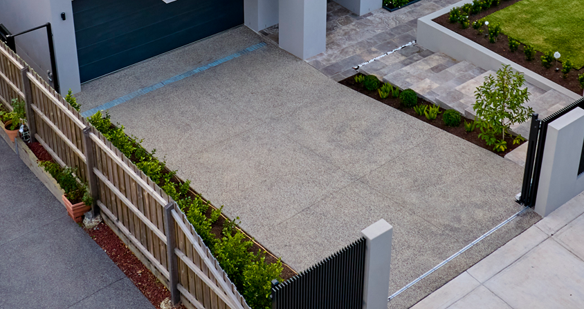 • Custom surfaces including premium stone paving, exposed aggregate, and concrete